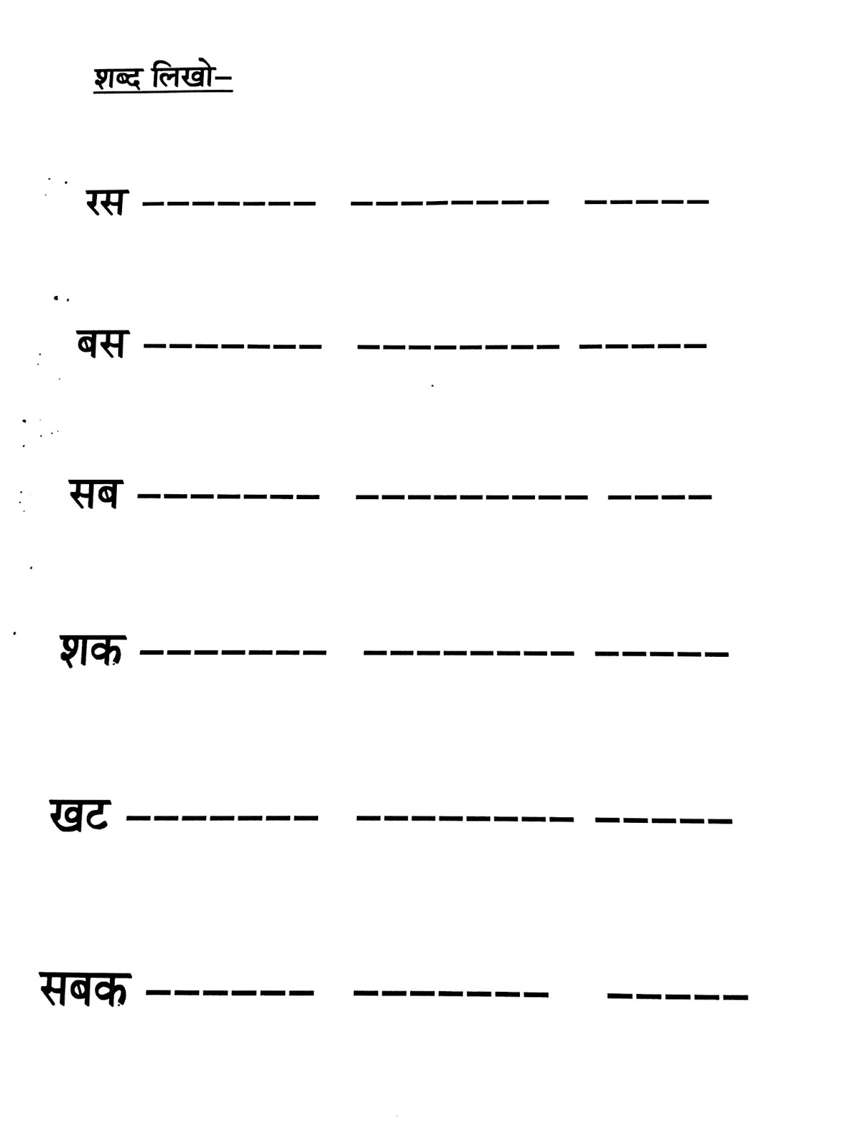 उत्तर -वक, भवन , नल , वट , मठ , टमटम , मग , ठग , दमकल इकाई ५ र स श ख